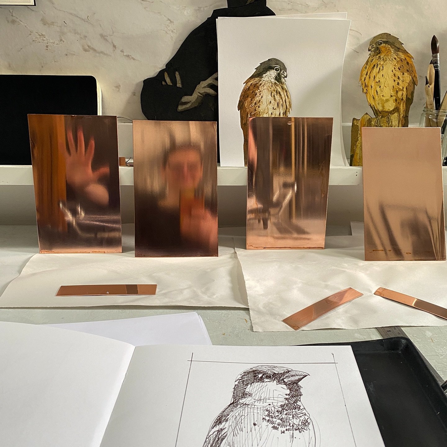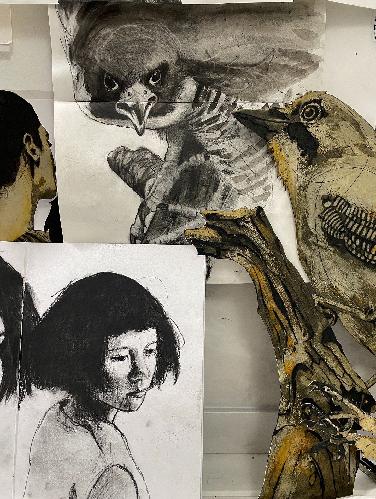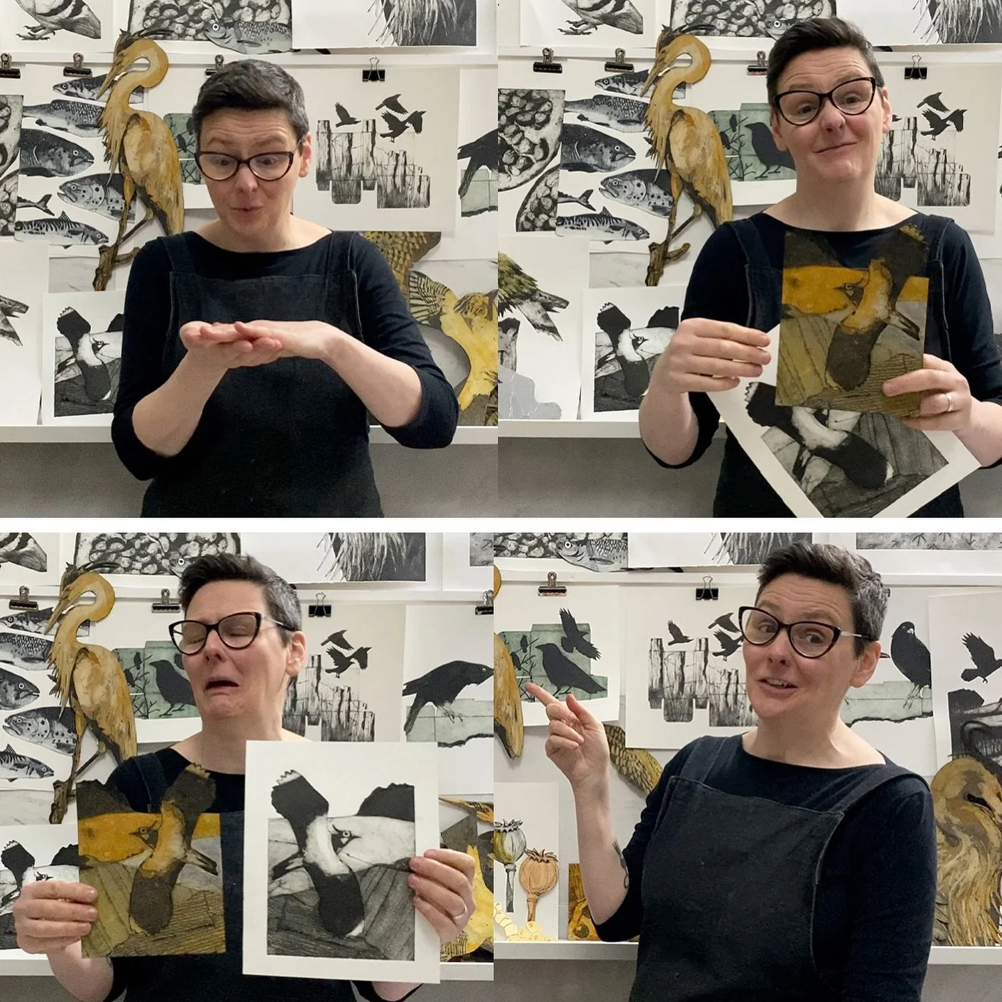 Her work explores structure, tone, and the expressive potential of simple materials. Whether it's the angular forms of stone heads or the dynamic compositions of familiar birds, Jenny’s prints celebrate shape and character through strong design and thoughtful mark-making.