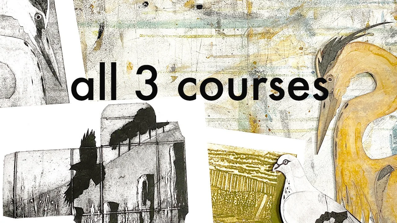 Discover collagraph printmaking in your own studio with this discounted 3-course bundle. Learn to build rich, textured plates using card, packaging, and found materials. Perfect for beginners or experienced printmakers with access to a press.